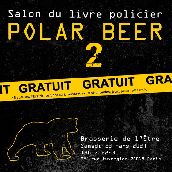 La deuxième édition de Polar Beer est sur les rails. Ce salon polar qui se déroule à la brasserie de l’être (7 rue Duvergier, 75019 Paris) sera de retour le 23 mars prochain.