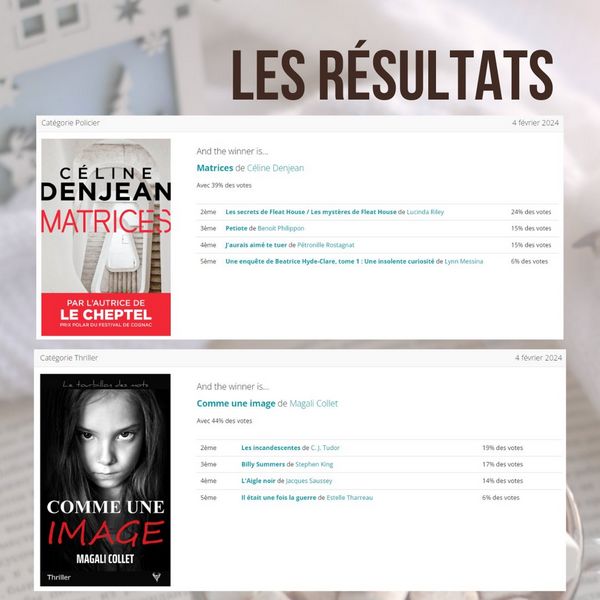 Dans la catégorie Roman Policier, c’est Céline Denjean qui a eu le plus de votes avec Matrices.