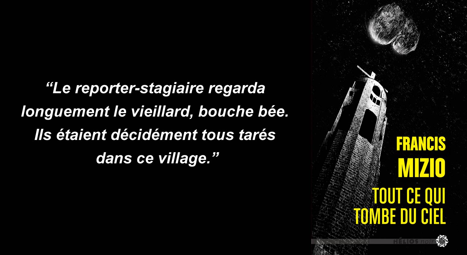 Francis Mizio est auteur de romans noirs complètement déjantés. On se souvient avec délice de La Santé par les plantes, un livre hautement édifiant sur la constipation. Le voici de retour avec Tout ce qui tombe du ciel dans lequel il croque les habitants d’un petit village français sur lequel s’est abattu une météorite... Place à l’interview...