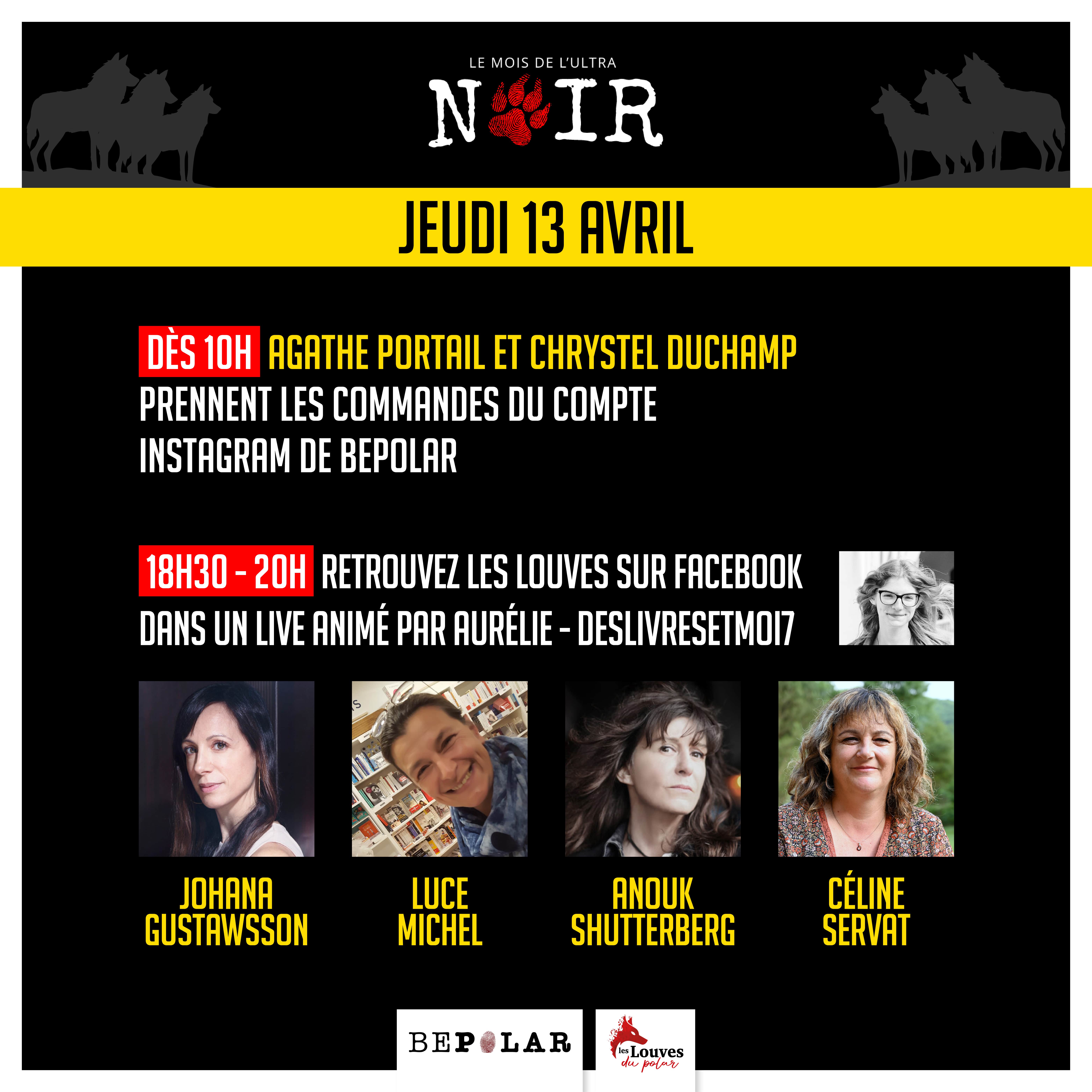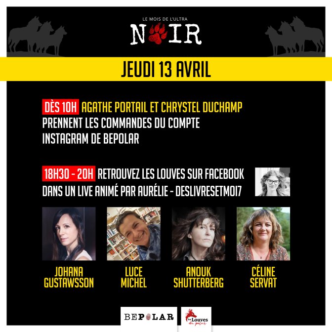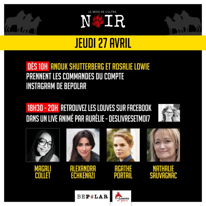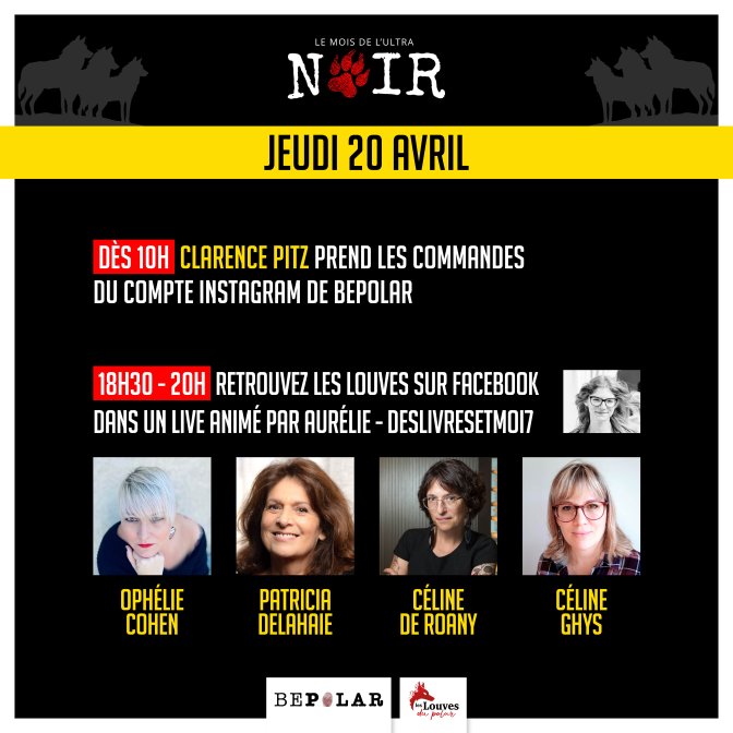 Vos autrices de polar préférées vous donnent rendez-vous chaque jeudi jusqu’au 4 mai (inclus). Elles animeront notre Instagram tout au long de la journée. Le soir retrouvez-les en Live sur notre page Facebook !