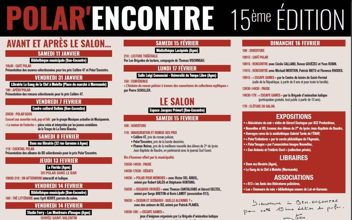 Le salon du polar Polar’Encontre se déroulera les 15 et 16 février prochain à Bon Encontre en Aquitaine (47).