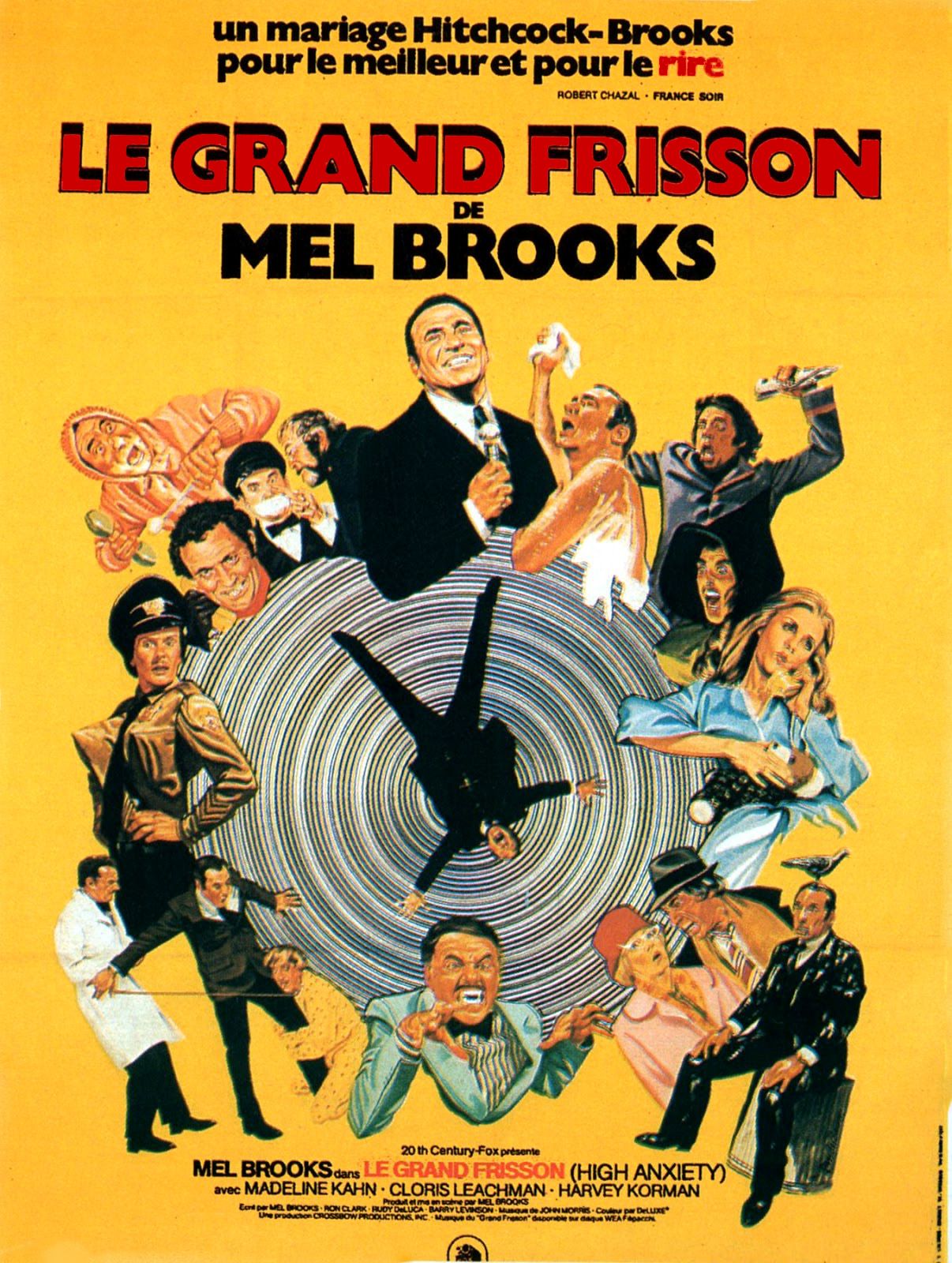 Quelques années avant de basculer dans le potache de La Folle Histoire de l’espace (1987) ou Dracula, mort et heureux de l’être (1995), il trouve l’équilibre parfait entre le loufoque abracadabrant et le culte infini – mélange indispensable à toute parodie. Avec en rôle-titre un Mel Brooks en Nobel de psychiatrie et nommé Richard H. Thorndyke, l’intrigue suit d’abord le protagoniste fraîchement nommé à la tête d’un asile psychiatrique de Los Angeles dont l’ancien responsable est mort dans des conditions étranges – un clin d’œil au film La Maison du docteur Edwardes. Puis le film fait de Thorndyke (référence directe au Roger O. Thorhnhill de La Mort aux Trousses) un faux coupable comme dans tout film de Hitchcock qui se respecte. Victime d’un complot lors d’un congrès de San Francisco, le personnage fait bientôt l’objet de crises de panique et de vertige à l’image du James Stewart de Sueurs froides.