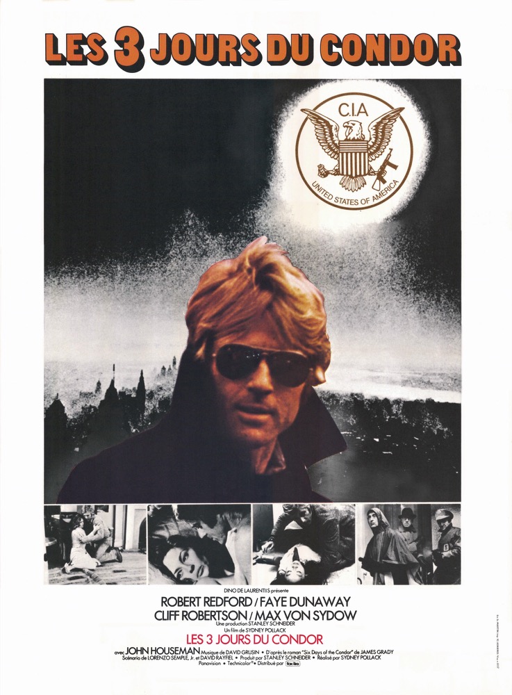 Mais l’on pourrait tout aussi bien citer, dans la même veine, le déroutant Blow Up (Antonioni, 1966) – relecture en filigrane du sentiment d’irréalité se dégageant de l’assassinat de Kennedy –, Les 3 Jours du Condor (Pollack, 1975), Marathon Man (Schlesinger, 1976) et Osterman week-end (Peckinpah, 1983) adapté de Robert Ludlum. Avec à chaque fois une intrigue conspirationniste (sur fond d’assassinats politiques, de guerre du Viêt-Nam et de libertés individuelles en sursis) qui repose sur un personnage convaincu d’avoir mis au jour une machination ou un scandale d’état, et ce, sans pour autant être en mesure d’en apporter la preuve irréfutable.
